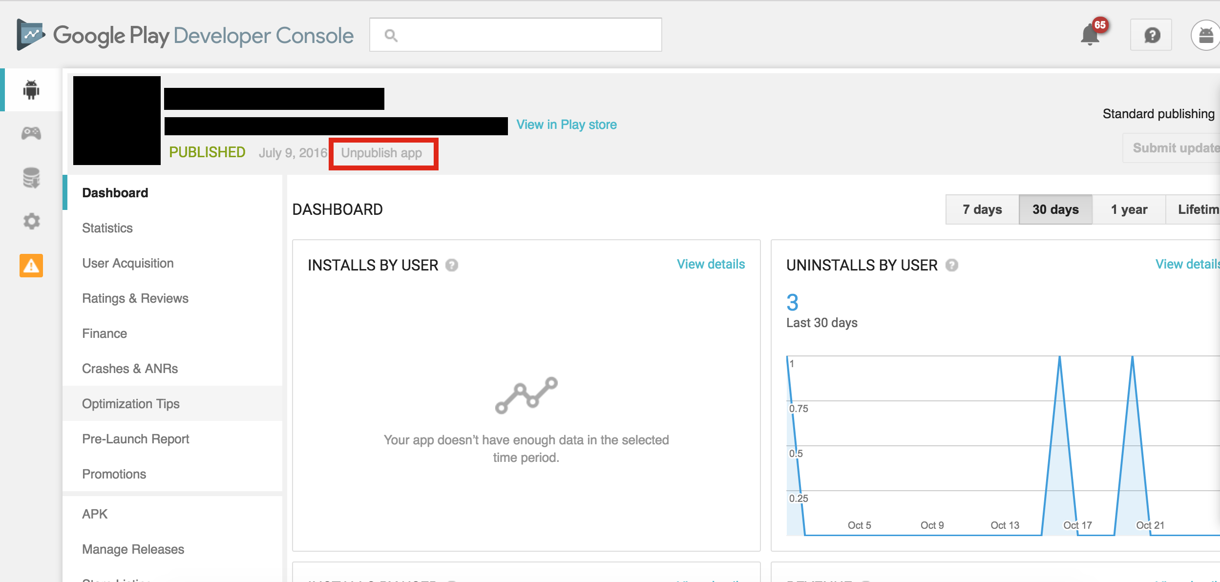 Etapa 3: Clique em "Cancelar publicação do aplicativo".